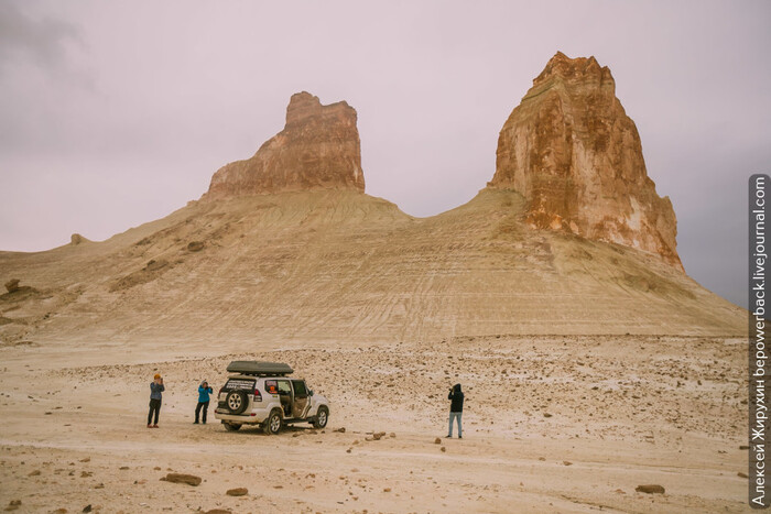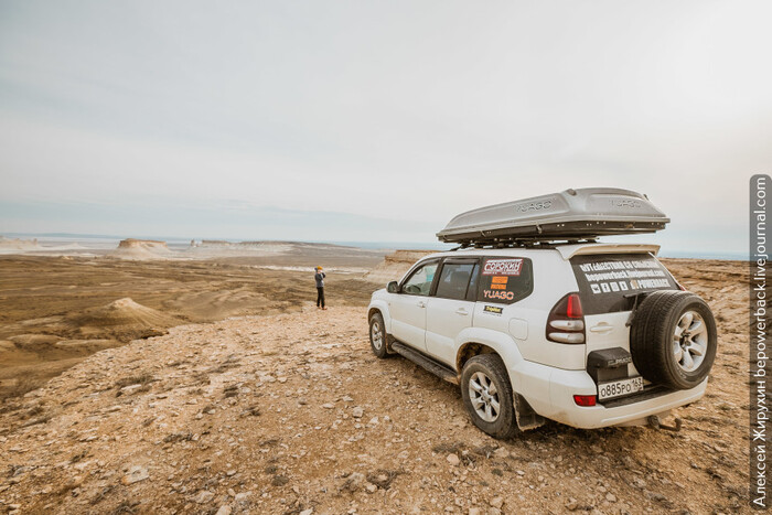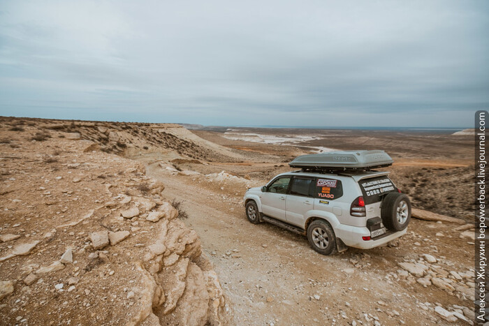 3. Если еще 1-2 дня простояла бы хорошая солнечная погода, имелся бы шанс выдернуть машину силами каких-нибудь джиперов, которых мы планировали найти. Для этого нужно было ловить попутку и пилить до ближайшего крупного города Жанаозен 110 километров.
