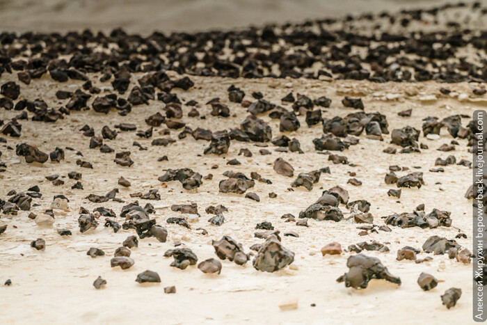 Также обошли всю местность и собрали все крупные кусты, которые можно было бы кинуть под колеса КАМАЗу. Главная сложность была в том, что под небольшим слоем с виду сухой почвы располагалась та же самая жидкая глина и КАМАЗ бурил колею, ломая верхний слой, но никак не мог выехать.