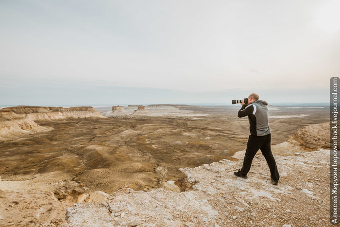 Выбегаем из кафе, ищем таксиста, созваниваемся снова с МЧС и договариваемся, куда нам подъезжать. В КАМАЗе было 3 человека: водитель, представитель МЧС и специалист по местности Босжира. Я сажусь в кабину четвертым, Алексей и Лина, кто ездил со мной в Жанаозен, остаются и ищут попутку.