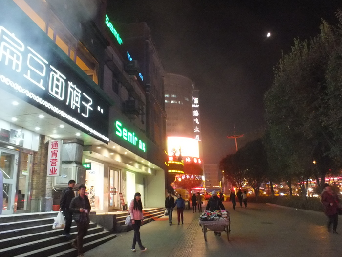 Подошедший пожилой охранник радостно восклицает "ааа, лаоваи!!!". Наконец, удается договориться о возврате всех наших вещей взамен за непроникновение с ними к кассам. Уточняю расписание и стоимость поездов до Ланчьжоу и Пекина - около 190 юаней. Утро, 7 часов местного времени. Идем дальше гулять по городу, состояние уже ближе к сомнабулически-агрессивному.