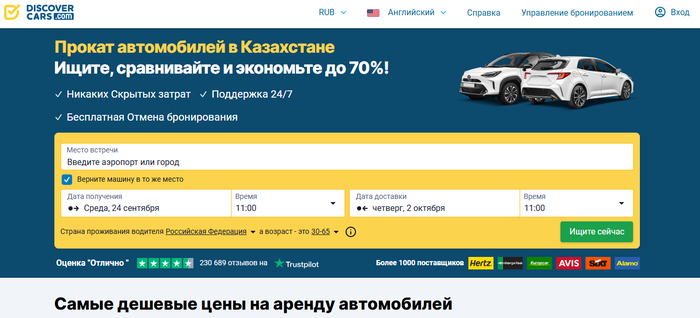 Когда мне нужна предсказуемость и выбор «от седана до внедорожника», я первым делом захожу в Getrentacar. Почему? Потому что это один из немногих агрегаторов, где удобно сравнивать предложения локальных прокатчиков и сразу видеть ключевые условия: залог, лимит пробега, правила по возрасту водителя, страховки. В Казахстане это важно: расстояния большие, дороги разные, а планы у путешественников — ещё разнообразнее.