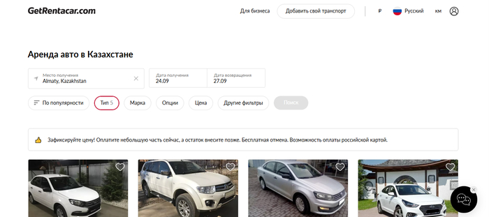 ▶️ GetRentacar — найдите выгодные авто у локальных прокатчиков, бронируйте без предоплаты и оплачивайте в удобной валюте в Казахстане.