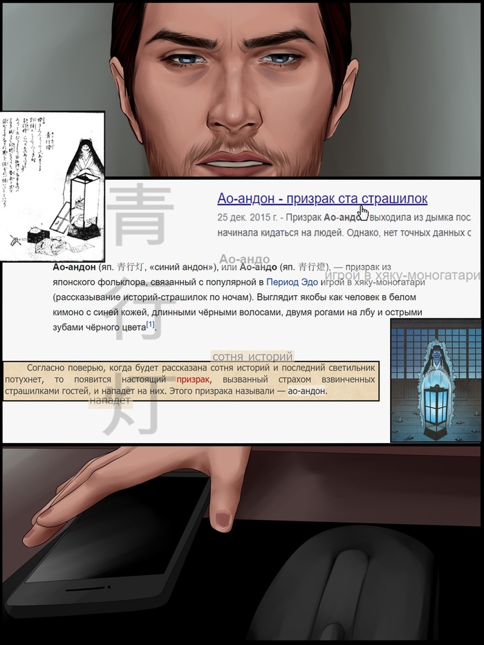 Спешу представить вам третью комикса по моему произведению "Хяку-моногатари в ночь на Хэллоуин".