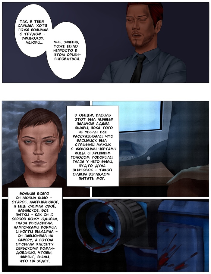 «Помоги-помоги-помоги» – сыпались сообщения, пока Мари-тян взбиралась на него, то ли как любовница, то ли как голодная самка богомола. Грудную клетку сдавили навязчивые объятия, острые коленки пригвоздили Славика к спинке кресла, а под юбкой что-то остро скребло по штанине, оставляя полосы торчащих ниток. Перед внутренним взором встала кровавая пиксельная каша из новостного канала. «В лапшу...»