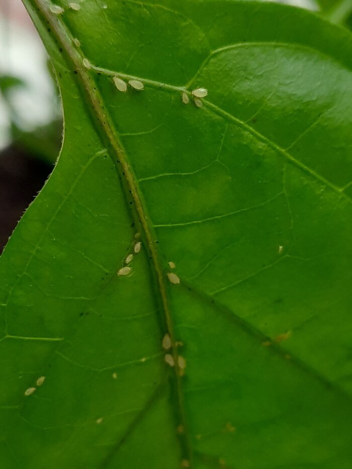 И все было, относительно, неплохо до тех пор, пока на нижних листьях хабанеро не стали появляться черные точки. Вооружившись практическими руководствами по ботанике я стал изучать проблему. К сожалению, симптом крайне не специфичный и может говорить о поражении бактериями, грибами, животными паразитами и т.п. Поэтому принял решение наблюдать и проводить паллиативное лечение: листы, покрытые черными точками, состригал и выкидывал. Со временем, таких листов стало совсем много, однако, выраженной симптоматики паутинного клеща в виде паутины и пожелтевших, окисленных листиков не было. Осенью начался сильный листопад. Мне было достаточно передвинуть горшок с растением, чтобы с него попадали почти все листья. Все это казалось подозрительным и вот в один прекрасный день, присматриваясь к листьям, я обнаружил на них настоящих клещей в огромном количестве. Все растения были покрыты этими паразитами. Оставлять дома и пробовать бороться с ними желания не было, поэтому было принято решение о радикальном уничтожении паукообразных вместе в растениями. Судя по всему, земля с торговой площадки оказалась с "диверсионной группой" внутри.