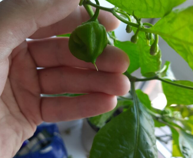 К моему сильному разочарованию, оценить с этой позиции желтый хабанеро не могу, так как он изначально рос в условиях паразитирования паутинного клеща. За все время образовалось лишь два небольших плода, которые так и не смогли дозреть до конца.