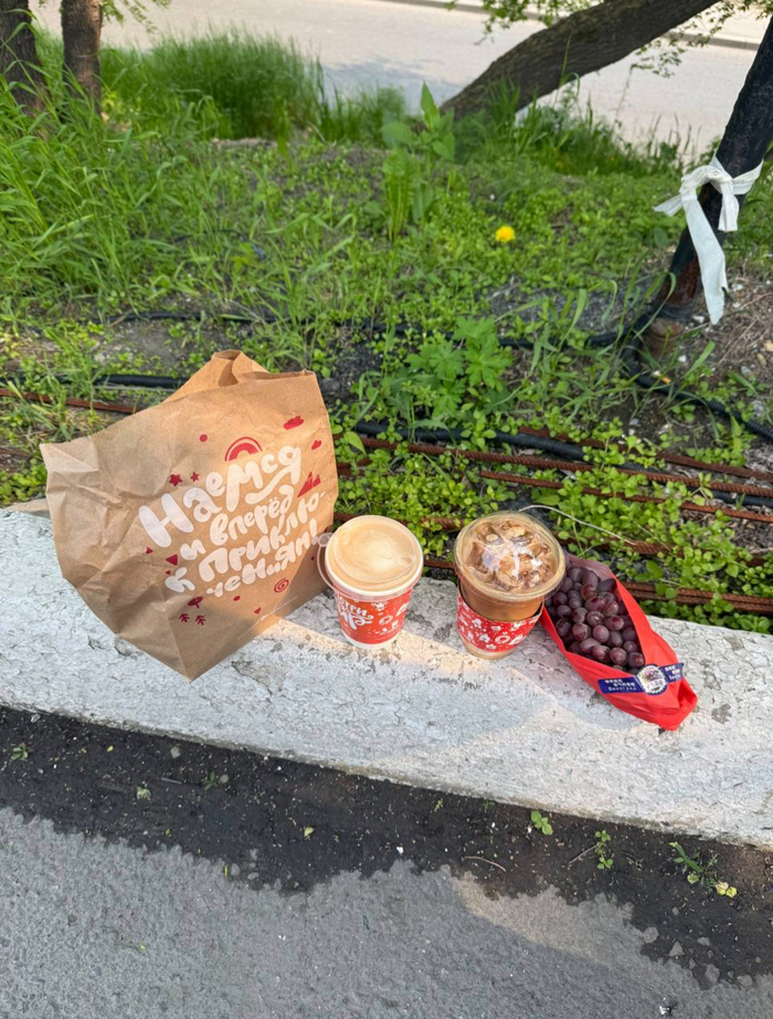 Дошли, заказали, встали у бордюра в ожидании) готовили быстро и вот уже минут через 7 наша еда была готова)))