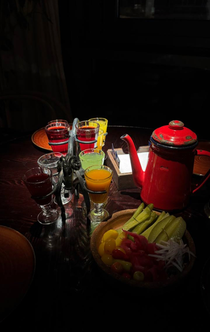 Продолжаем сидеть восхищаться тем, что происходит) и к нам вновь подлетает Лиза с порцией настоек)😂 мы такие «мы ниче не заказывали», а она «это я вас угощаю, и даже выпью с вами, у меня есть тост» 🥹🥹