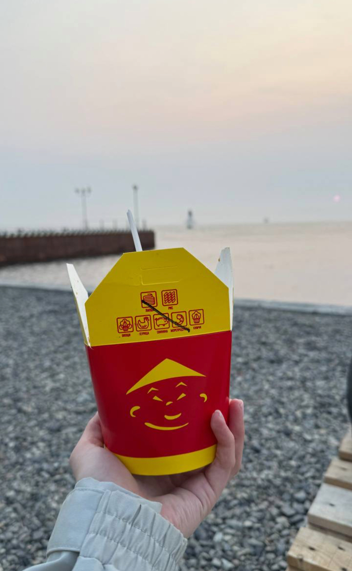 Знакомство прошло на ура, Оля сразу предложила поесть китайской лапши с видом на море) несмотря на то, что было прохладно, мы всеми руками были за!