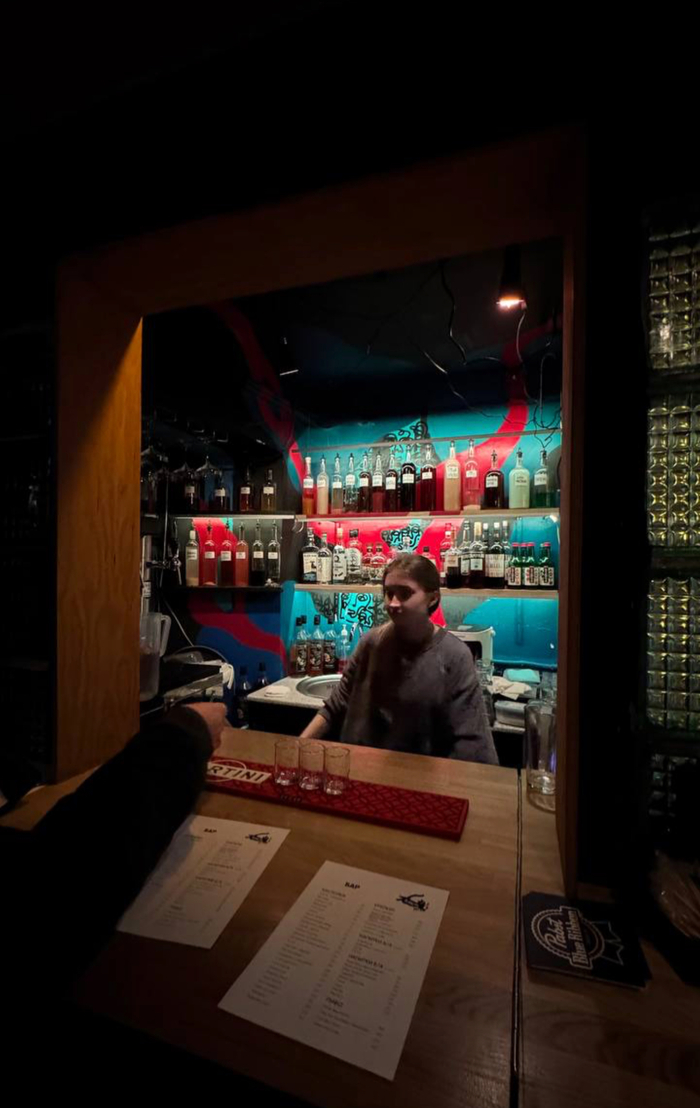 Естественно по пути мы не прошли мимо настоишной) где взяли по рюмашке, чтобы девчонки согрелись) а потом заскочили в еще одну, точнее это был больше джаз бар, в котором каждый день в 22:00 концерт, и вход становится платным) мы пришли без пятнадцати и Оля договорилась, что нас пустят пропустить по одной🤝🔥