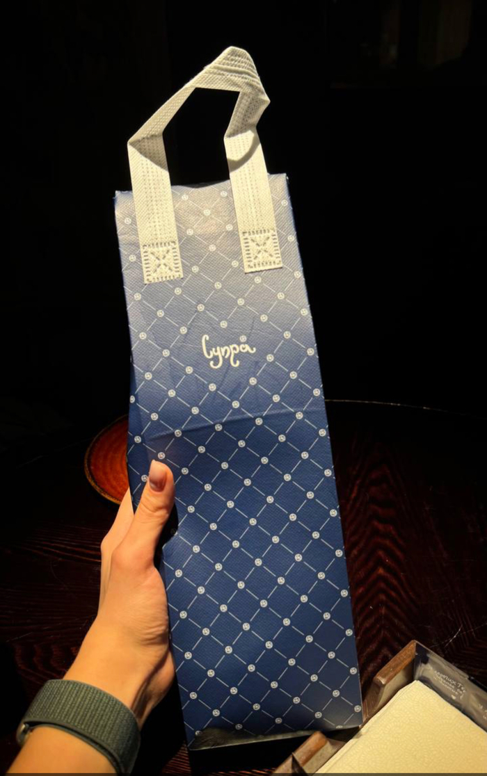 И тут к нам подлетает Лиза) мы сходу начинаем обниматься, как будто знаем друг друга сто лет) знакомимся, общаемся, у нас принимают заказ) и тут подошел еще один сотрудник и протянул бутылку вина)