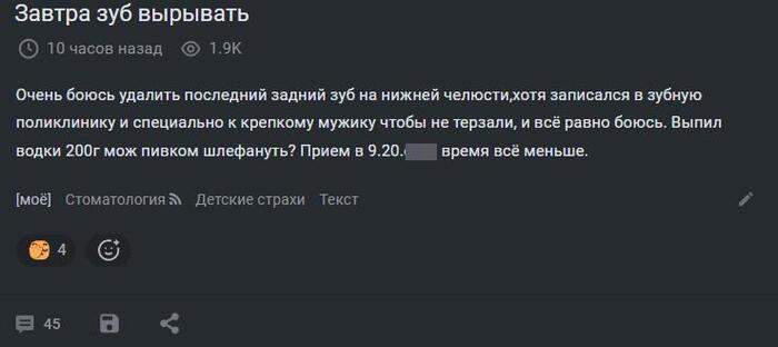 Всем привет! Сегодня наткнулся на такой пост, который навел на мысль, что я что-то упустил. В главе 10, почти 3 года назад мы разобрали, что делать после удаления зуба, но как к нему готовиться, так и не обсудили. Этот пробел надо в срочном порядке заполнять, особенно когда дело касается удаления зуба мудрости.