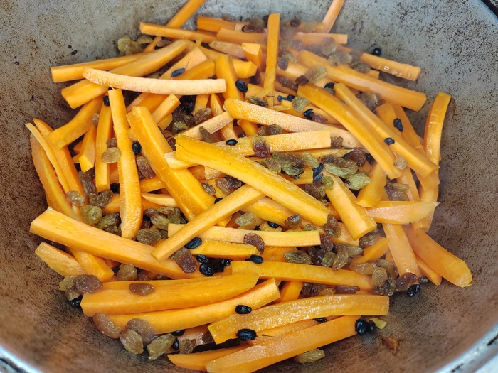 16. На морковь - барбарис, изюм и зиру (пока без соли). Если решили делать с нутом, то и его тоже.