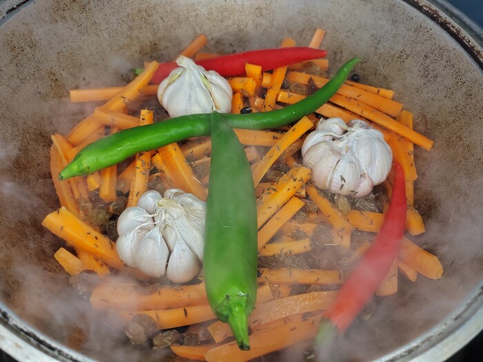 В общем, пригласили меня друзья на дачу с посылом "Я в этом году не кушал нормального плова" (цитата), в комментариях под одним из постов запрос, да и сам я давно хотел попробовать приготовить самаркандского плова (ну просто классический ферганский - это что-то понятное и привычное, а до иранских откидных пловов я ещё не дорос).