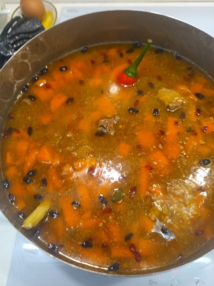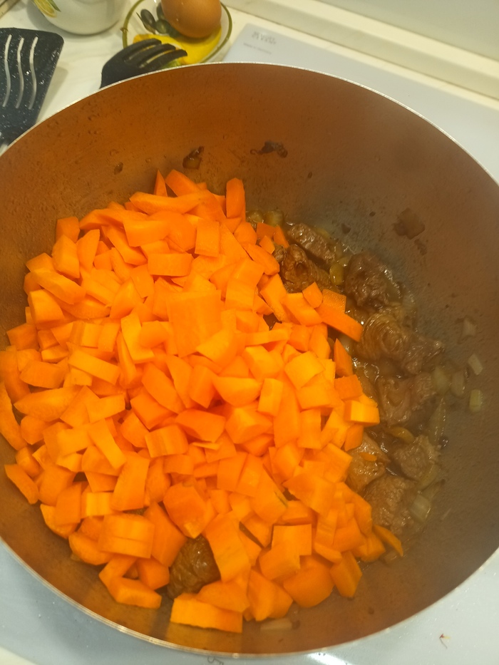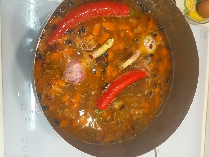 После чего засыпаю морковь, накрываю крышкой и оставляю все это минут на тридцать на среднем огне.