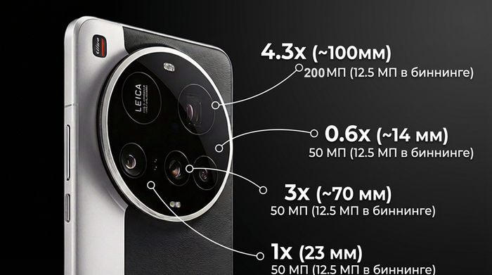 Во-первых, это 3 модуля по 50 мегапикселей каждый + перископный модуль на 200мп