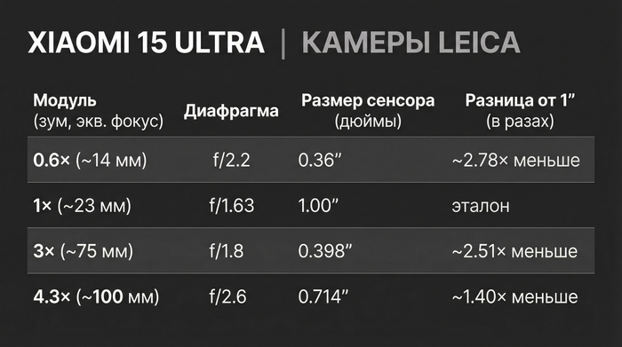 И наконец самое важное. Это дюймовая матрица, которая может вытянуть даже самые плохие условия (при съёмке на основной модуль конечно же)