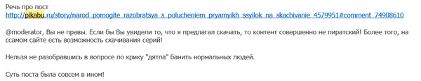 После этих действий, также не разобравшись с вопросом, администрация (уже с маленькой буквы) Pikabu удаляет пост и меня загоняет в БАН!