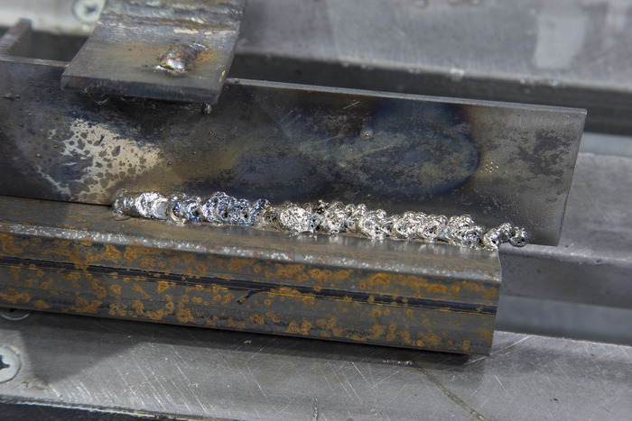 Так, явно быть не должно. Перепроверил все шланги и нашел что в редукторе баллона, есть вентиль, которого я не заметил. Получается, что я пытался сваривать вообще без газа. Открыл вентиль и дело пошло! Вот так выглядит плоский шов -