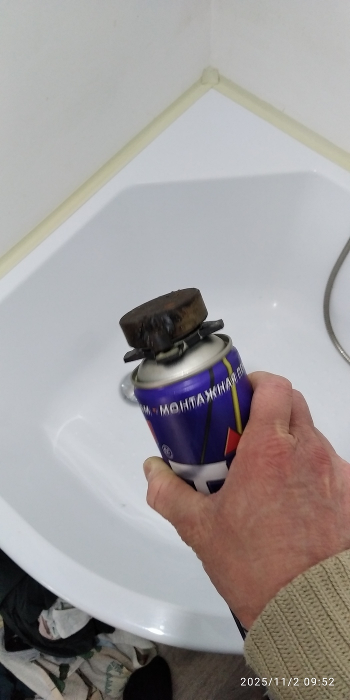 Увидел пост. Хочу показать как я делаю. Когда баллон монтажной пены снял с пистолета, он потихоньку травит. И выкидывать жалко почти полный баллон пены.
