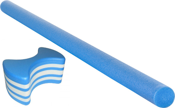 10) И наконец, пара аксессуаров из бассейна. Первый - это приспособление для плавания, которое представляет собой поплавок в форме восьмёрки, пловцы помещают его между бёдрами для поддержания тела на плаву. Второй – длинная гибкая палка из вспененного материала, используемая для аквааэробики.
