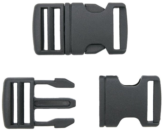 6) Тип пластиковой застежки. Используется в одежде, аксессуарах, сумках – для соединения тканевых лент, строп, ремней.