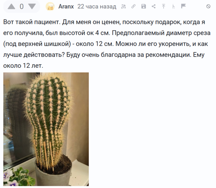 После постов про подрезку кактусов получил вот такой запрос от @Aranx. Решил разобрать отдельным постом, может кому то тоже будет полезно.