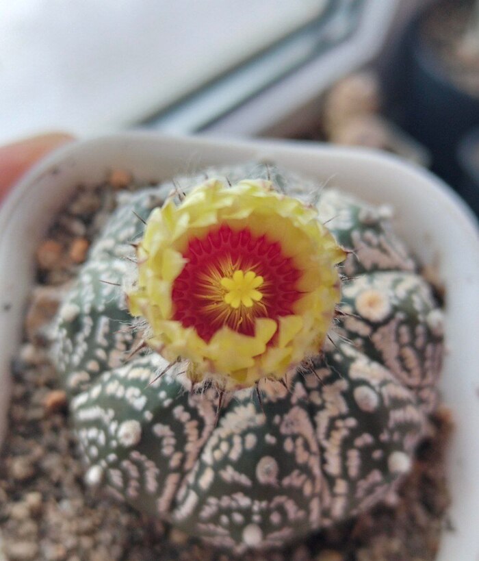 Вот и ответ на вопрос: а какие кактусы зацветают легко и без зимовки? Gymnocalycium mihanovichii.