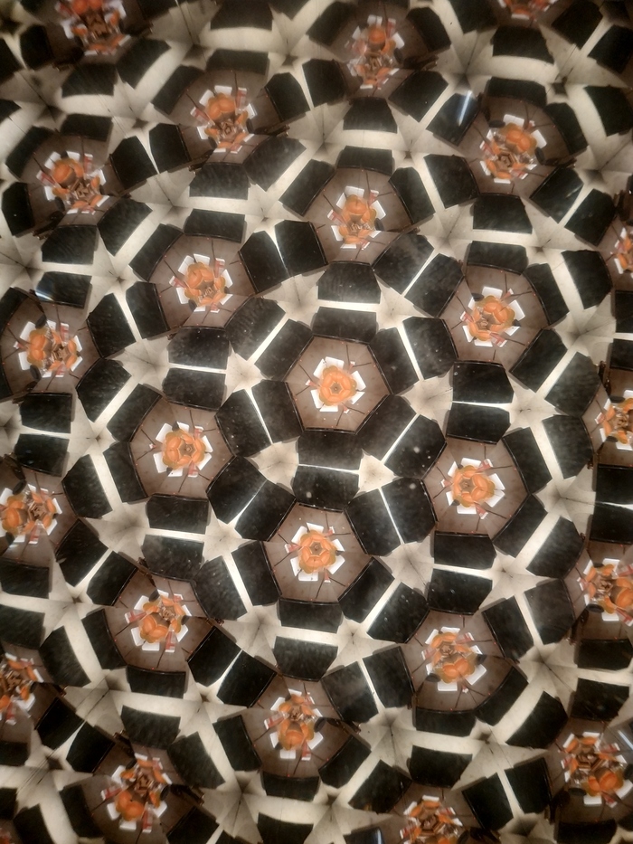 Как устроена игрушка-калейдоскоп с математической точки зрения? Как сделать калейдоскоп из двух зеркал? На каких геометрических фигурах можно строить калейдоскопы и что произойдёт, если попробовать использовать что-то другое? В чём заключается свойство калейдоскопичности и какой раздел математики описывает связанные с ним закономерности?