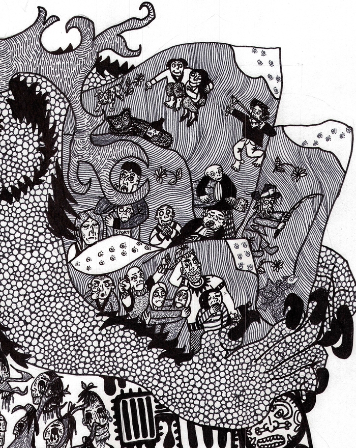 Пожалуй, здесь стоит сделать очередное отступление. При дальнейшем описании, мне никак не обойтись без таких слов как: страшное, монстр, чудовищное, пугающее, непонятное и тому подобное. Но использовать мне их придется не для того, чтоб нагнать страха и ужаса, а потому что я попросту не знаю как по-другому описать свой сон. И не надо забывать, что описывается происходящее (в том числе и мои ощущения) именно во сне, это днём сидя в тёплом кресле перед монитором, что называется в трезвой памяти и здравом рассудке, мы можем посмеиваться над наивными ночными страшилками, находить очевидные логические несостыковки и т.д. Но когда мы спим, сон для нас и является текущей реальностью, и все наши чувства в этот момент искренние и все логические несоответствия, нарушения законов физики, во сне нас совсем не удивляют и кажутся совершенно естественными.