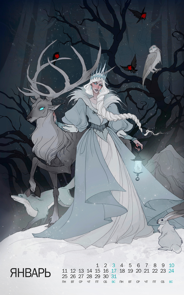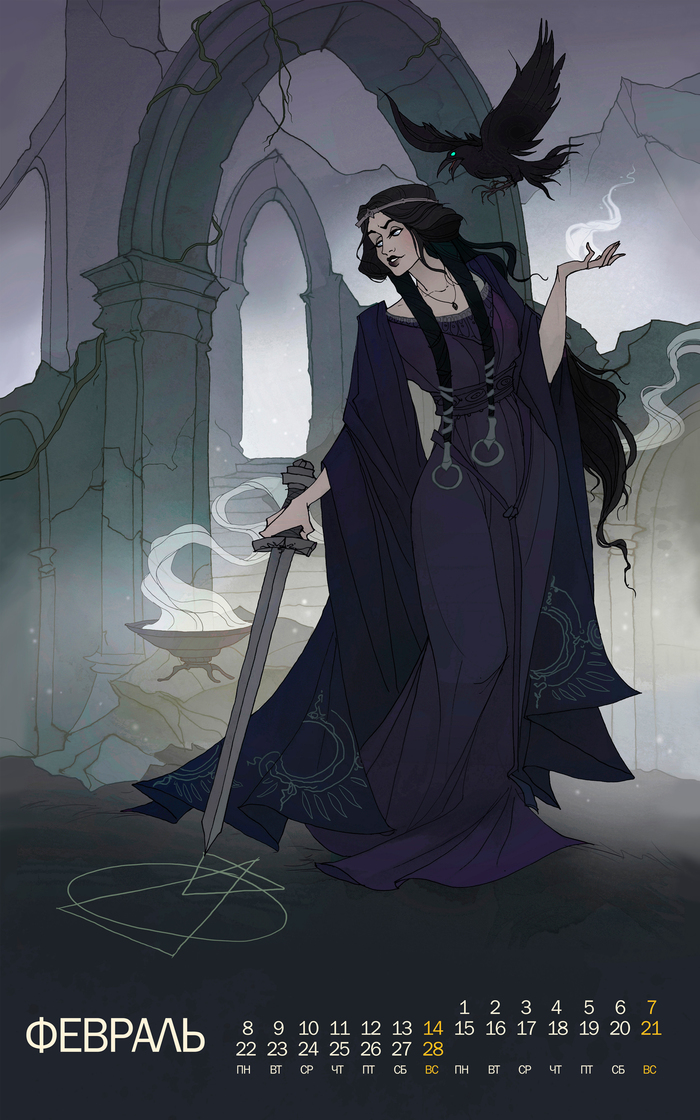 Арт пера @GwennetGreen, все иллюстрации без календарной сетки вы можете найти в её группе ВК, а с сеткой у меня в постах.