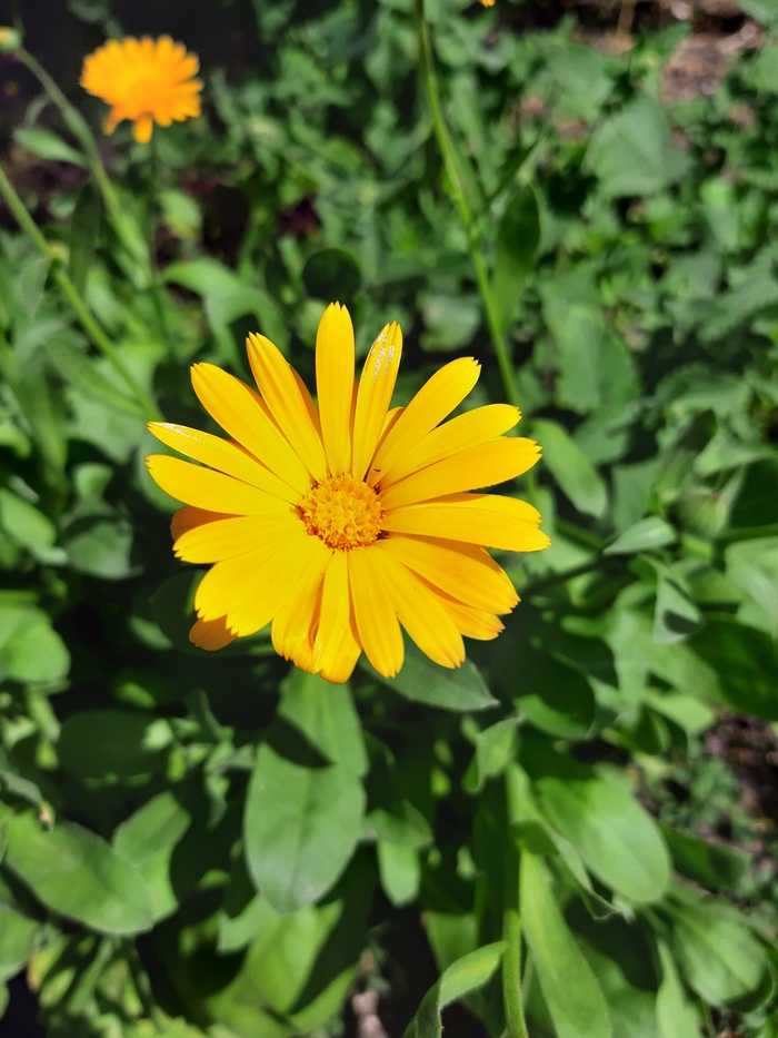 Поздние груши упали с дерева, а под деревом у меня растут ноготки, куда же без них.