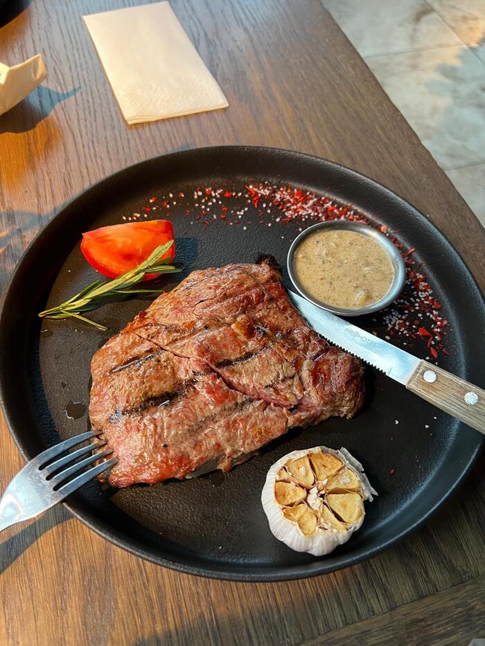 Меня как человека давно не бывшего в Калуге удивила цена на стейк рибай. За 350 граммовый стейк мы заплатили, внимание, 500 рублей. Это 5 евро. Конечно, цена "по акции", но всё же "дайте 2" :-) Стейк очень вкусный. Чаевые официанту оставить можно по QR коду. Красота. Всем настоятельно рекомендую посетить данный ресторан!