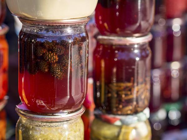 Шаль и варежки из овечьей шерсти, меховая шапка, красивый нож, горный чай и мед – с Кавказа можно привезти уйму замечательных сувениров. Но если вы ищете что-то по-настоящему необычное, берите варенье из сосновых шишек. Поначалу смолянистое лакомство настораживает, но, когда распробуешь, то с удовольствием отправляешь в рот ложку за ложкой. Особенно здорово уплетать такое варенье с травяным чаем на веранде отеля с видом на Главный Кавказский хребет. Не бойтесь откусить кусок шишки: развариваясь, они становятся мягкими.