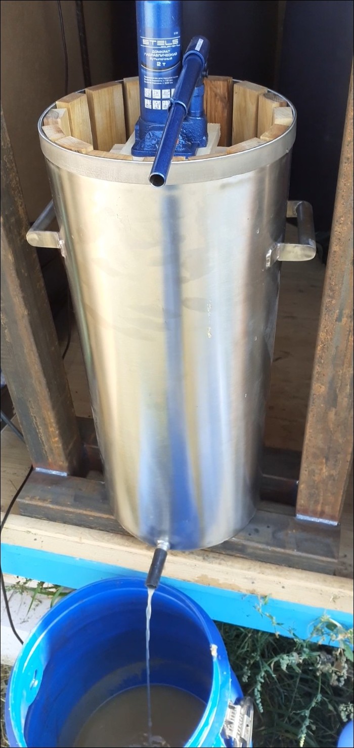 Тут довольно важный момент. Для получения раствора нам необходим чистый сок без мезги. Присутствие мезги в растворе для брожения способствует переработке пиктина в метанол при брожении, поэтому соковыжималки тут не пойдут. Готовится мезга и из нее давится сок. Тут как раз встает вопрос с мягкими грушами, потому что они при подготовке мезги превращаются в кашу, которую будет крайне тяжело отфильтровать. На этом этапе все зависит от количества сырья и оборудования. Если мало, можно на тëрке в ручную нахреначить, можно использовать какие-то приспособы. Лично я на кухонном комбайне делал на терке крупной. Получается неплохо. 100 кг вполне возможно за полдня натереть.