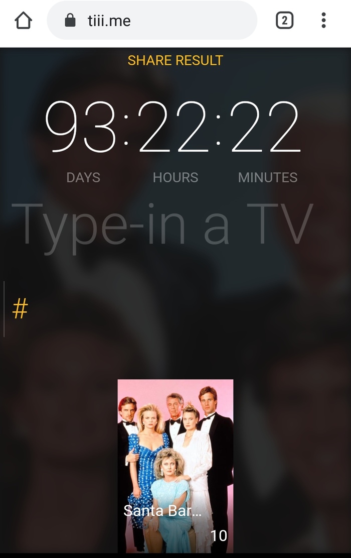 Нагуглил сайт который подсчитывает сколько времени нужно потратить чтоб посмотреть тот или иной сериал. Например, на Игру престолов потребуется 3 дня и 1 час. А вот на Санта Барбару приЙдётся запастись чипсами и попкорном впрок