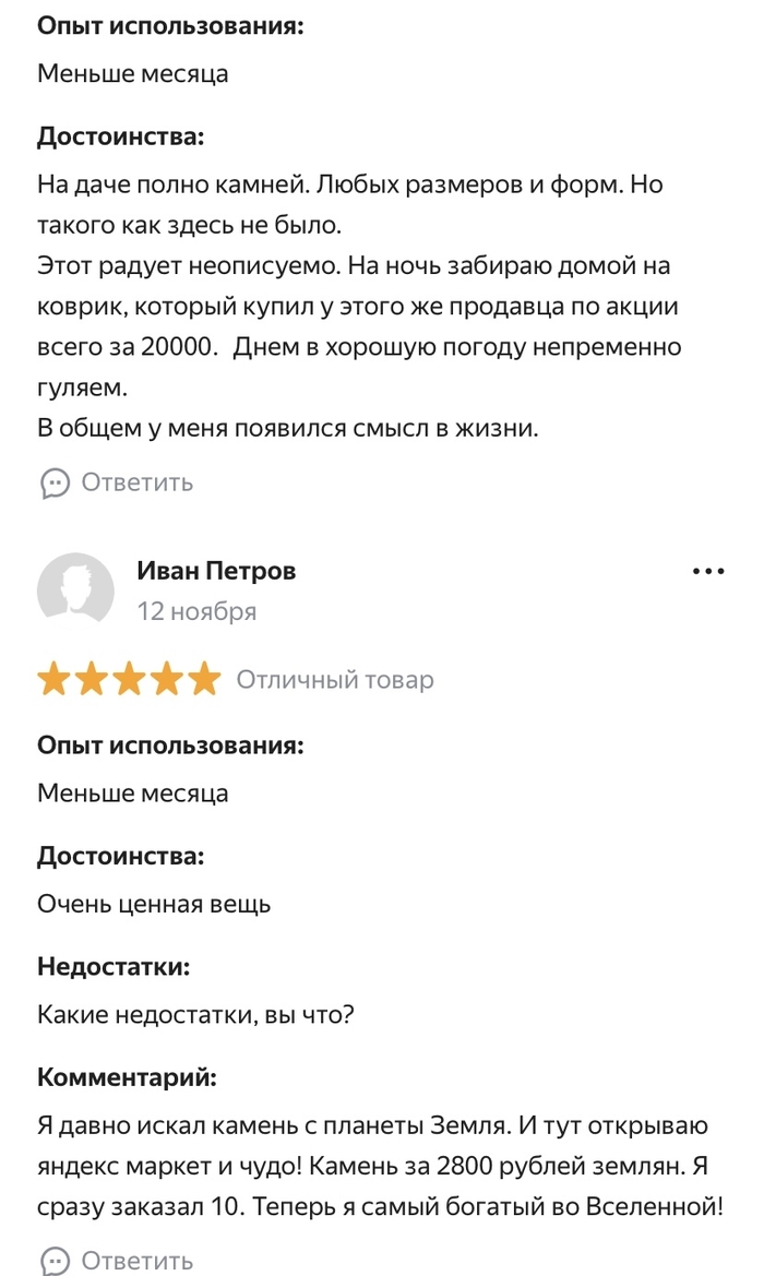 Возможно это было на Пикабу, но для меня стало открытием. Гениально! Собрать камни, наклеить глазки и продавать! Особенно зашли комментарии. Много тех, кто просто подарил друзьям ради прикола; детям, которые на что только не ведутся; ради любопытства. Но есть люди, которые ожидали от камня чего то другого, видимо.