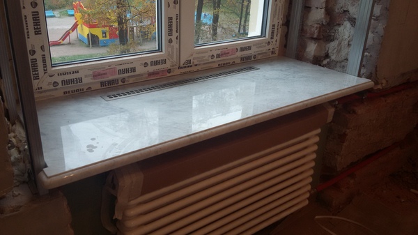 Два подоконника с вырезами под радиаторы, Bianco Carrara.