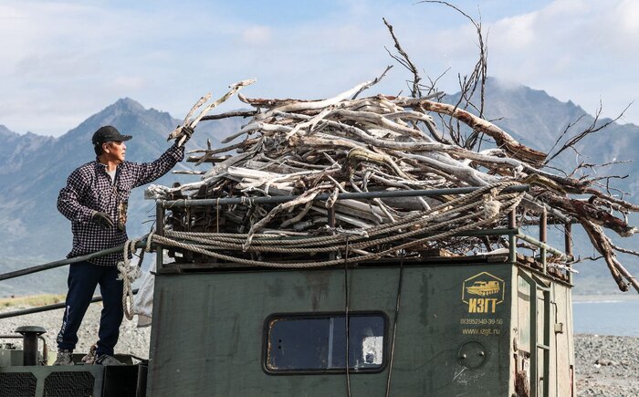 На фотографиях сбор дров для лагеря оленеводов на Беринговом море. В тундре с дровами не очень, но много дров на морском побережье. Дрова выносит сюда прибоем.