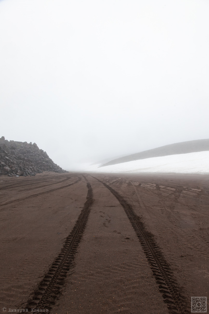 Впрочем, на этом приключения не закончились. Через какое-то время туман стал настолько плотным, что мы с трудом нашли дорогу к базе, а вторая группа, ехавшая на УРАЛ'е, заблудилась и несколько часов блуждала по кальдере, прежде чем вышла на правильную дорогу.