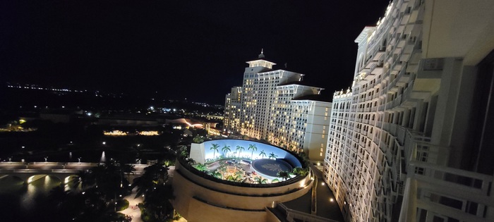 ВПП была залита водой, отчего имела блестящую поверхность. С обеих сторон и в дальнем конце наблюдались молнии. Метеорологический радиолокатор самолёта показывал сильные осадки с красными областями (грозовые очаги), которые находились к северо-западу от полосы и с юга. Ветер был боковой, справа относительно курса посадки, его скорость составляла 27-37 км/ч.