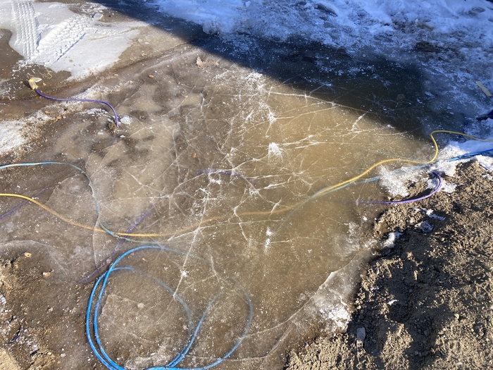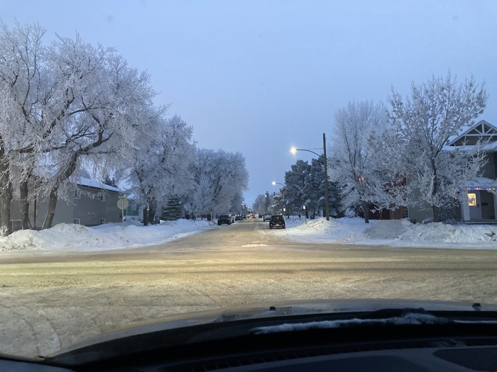 Вот так тут работает подогрев двигателя зимой. Из каждой машины торчит вилка. По правилам нельзя что бы кабель лежал на тротуаре и все делают такие мачты, только они все выглядят как виселица из двух досок и укосины, а я сделал красиво. Снега зимой было мало, всего два нормальных снегопада по 30 см в начале зимы и всё. Зато были морозы -30 почти всю зиму. Но подогрев двигателя работает идеально, утром автозапуском заводишь и садишься в уже тёплую машину.