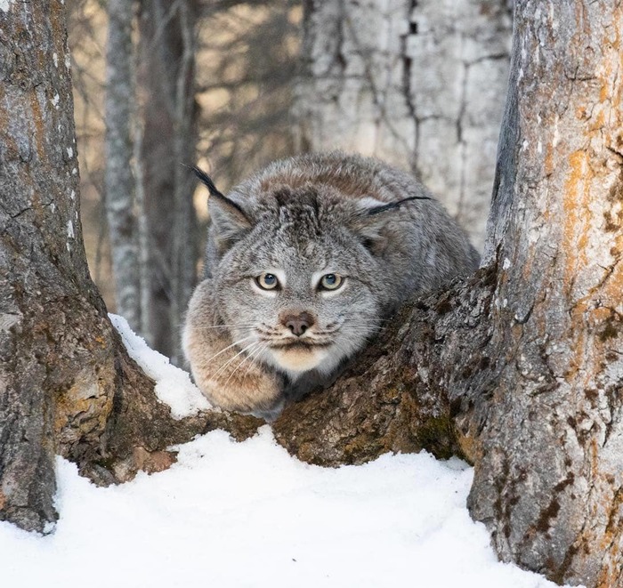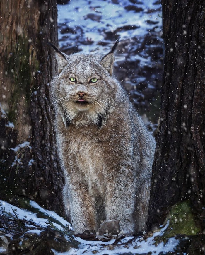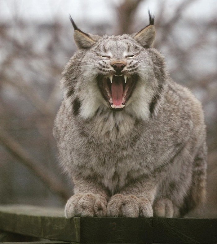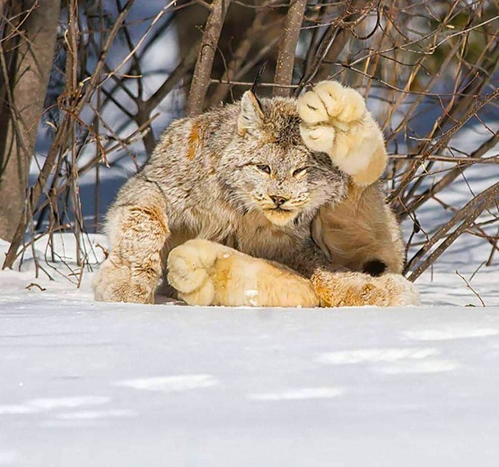 Канадские рыси — настоящий природный дар: размер этих кошек вдвое меньше обычных рысей, но вот мягкости и пушистости у них больше, чем у кого бы то ни было. А на их лапы, которые кажутся безумно громоздкими относительно величины их туловища, можно глядеть как на огонь в самом уютном камине. Да, это уютнейшие зимние коты! Вот только шутить с ними не стоит — они всё-таки дикие звери. И своими лапищами (хоть и очаровательнейшими) могут выбить из вас всё умиление.
