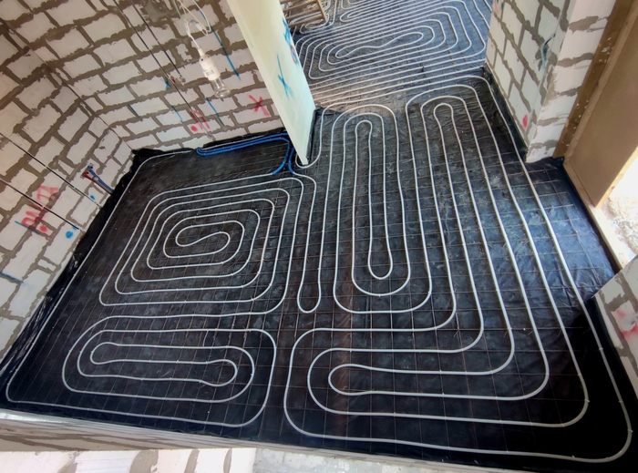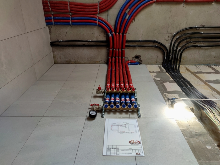 Если в предыдущем посте везде были теплые полы в доме 107кв.м., то тут такая же ситуация, но уже в доме с площадью 360кв.м. Здесь Юлия сразу сказала, что везде монтируем теплые полы, а финишное покрытие во всем доме у неё будет в виде керамогранита.