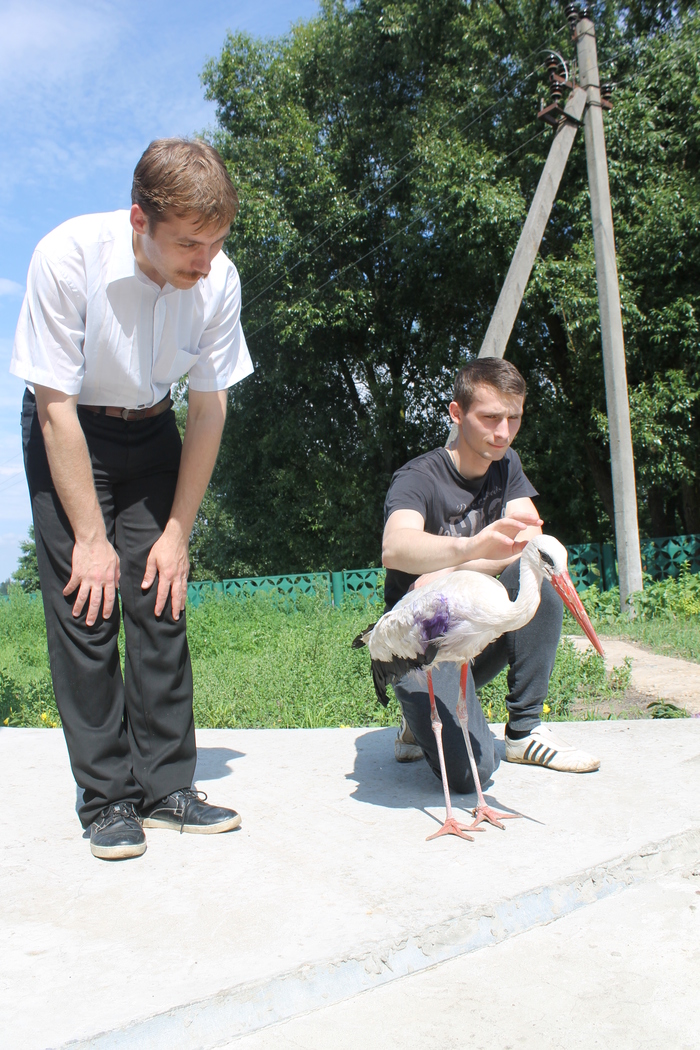Где-то неделю аист жил в моей комнате, выселив меня и засрав комнату чуть ли не до потолка. Плёнка на полу помогала мало. Каждый день приходили студенты и обрабатывали крыло, приносили рыбу.