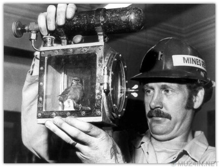 Ещё тридцать лет назад шахтеры обычно спускались на работу с канарейками в стеклянных камерах, таких как на фото. Подземные шахты могут содержать потенциально смертельные газы, приводящие к отравлениям, пожарам и взрывам. Без запаха и цвета, эти газы одинаково опасны как для людей, так и для канареек, но птицы гораздо более восприимчивы к газу и реагируют быстрее и заметнее, чем люди, тем самым предупреждая шахтеров о присутствии яда.