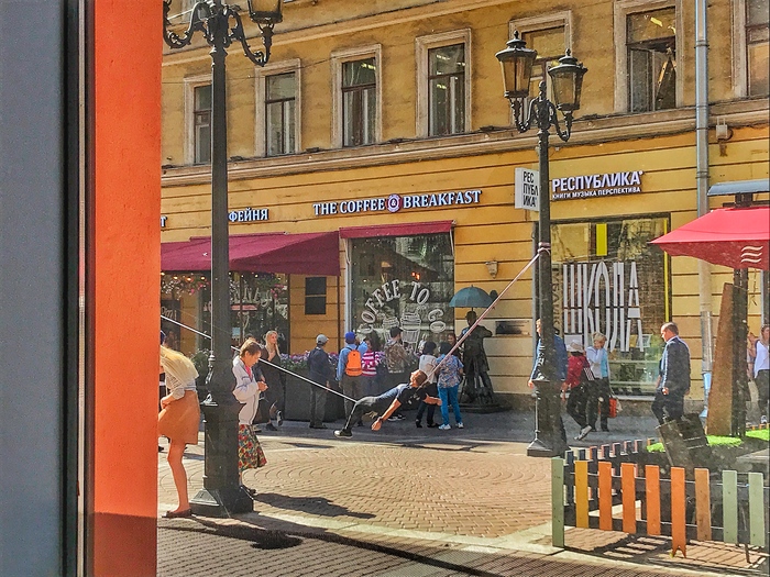 Канатоходец прошел через разведенный Дворцовый мост