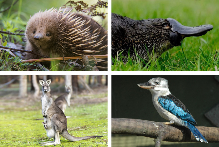 Но, наверно, в первую очередь туристов привлекают уникальная флора и фауна страны. Большая часть растительности и животного мира — эндемики, то есть произрастают и живут только в Австралии и близлежащих островах. Это яйцекладущие млекопитающие, сумчатые, змеи, рыбы, страусы и другие птицы, а также более мелкие и микроскопические обитатели лесов, степей, рек и океанов. Самые известные из них — ехидна, утконос, кенгуру и кукабарра.