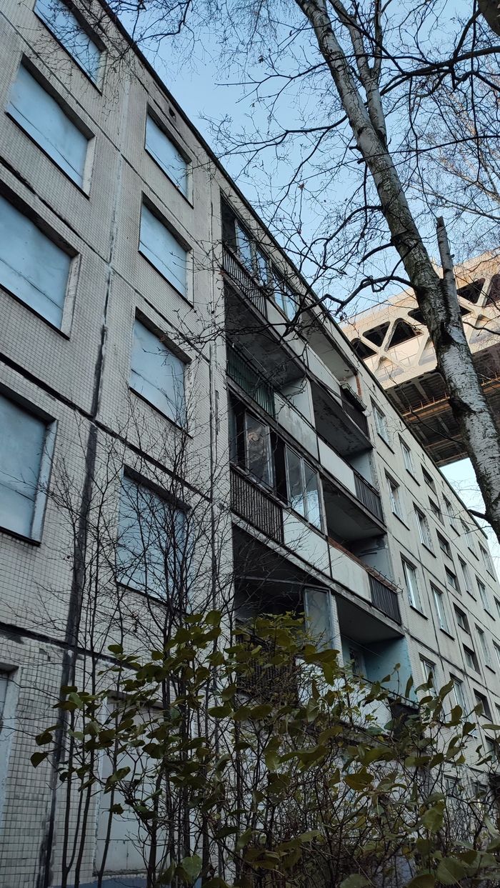 Как я понимаю, людей то ли расселили, то ли им просто было невыносимо находиться посреди стройки западного скоростного диаметра, и они просто покинули свои дома. Западный скоростной диаметр – это если что огромный мост, по которому можно проехать за огромные деньги. Ладно, не за такие уж и огромные, но всё же.