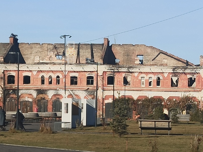 Мэр Ольга Витман мне ответила со сцены, что действительно памятник не соответствует своему историческому облику, надо делать запрос на реставрацию этого объекта культурного наследия и оценивать стоимость реставрации. Она сказала, что на памятнике грани не сглажены.